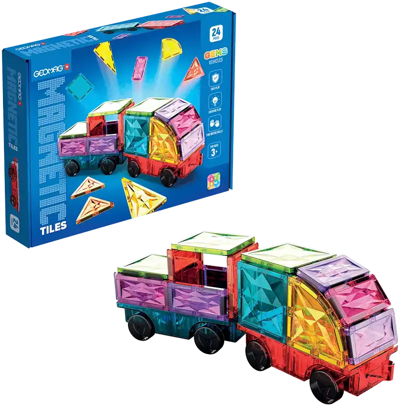 Pllaka magnetike 24 pcs Magnetic Tiles Gems vehicles building set Geomag