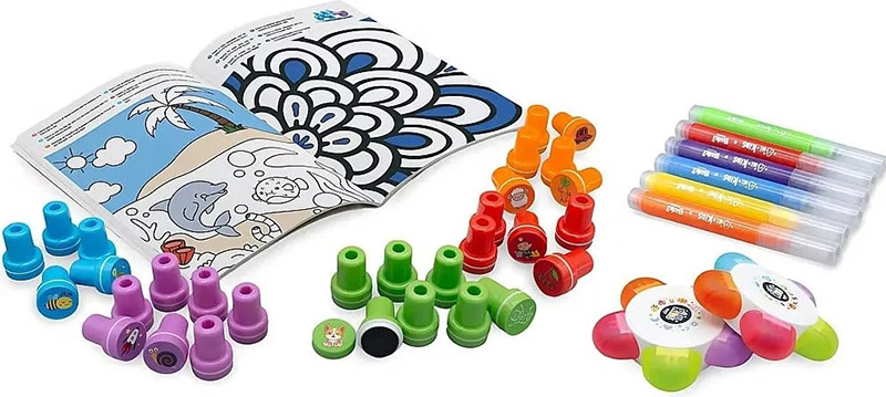 Një set aktivitetesh me mbi 45 vula të ndryshme për të zhvilluar kreativitetin dhe aftësitë motorike të fëmijëve.