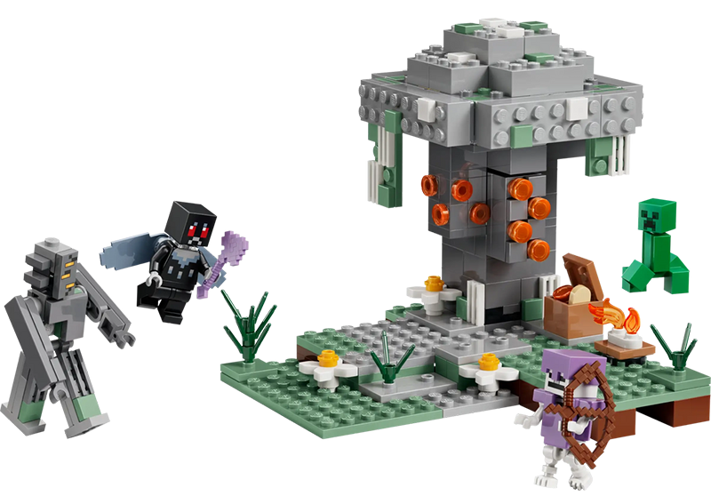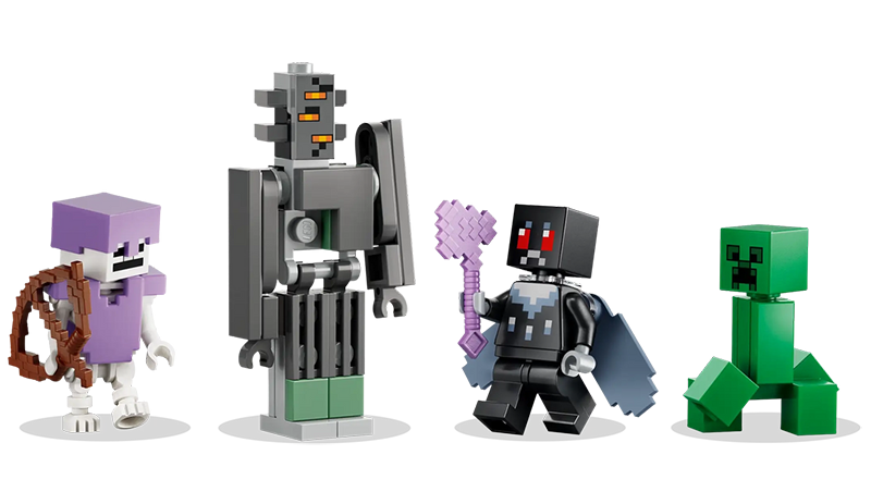 Minifigura Mothman mban krahë elytra dhe mban një sëpatë të magjepsur, dhe minifigura skelet mban armaturë diamanti dhe mban një hark. Aksesorë të tjerë për të frymëzuar lojën imagjinative përfshijnë një arkë ruajtjeje, grumbuj rrëshire, një zjarr kampi.