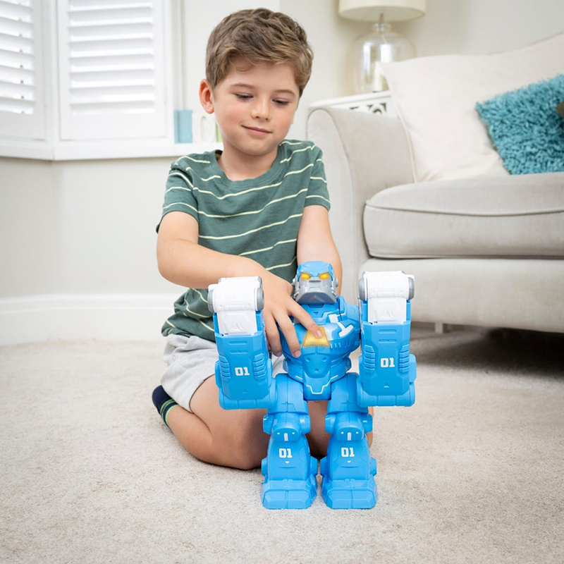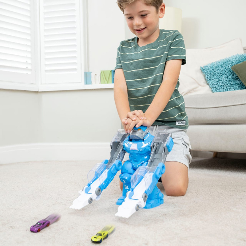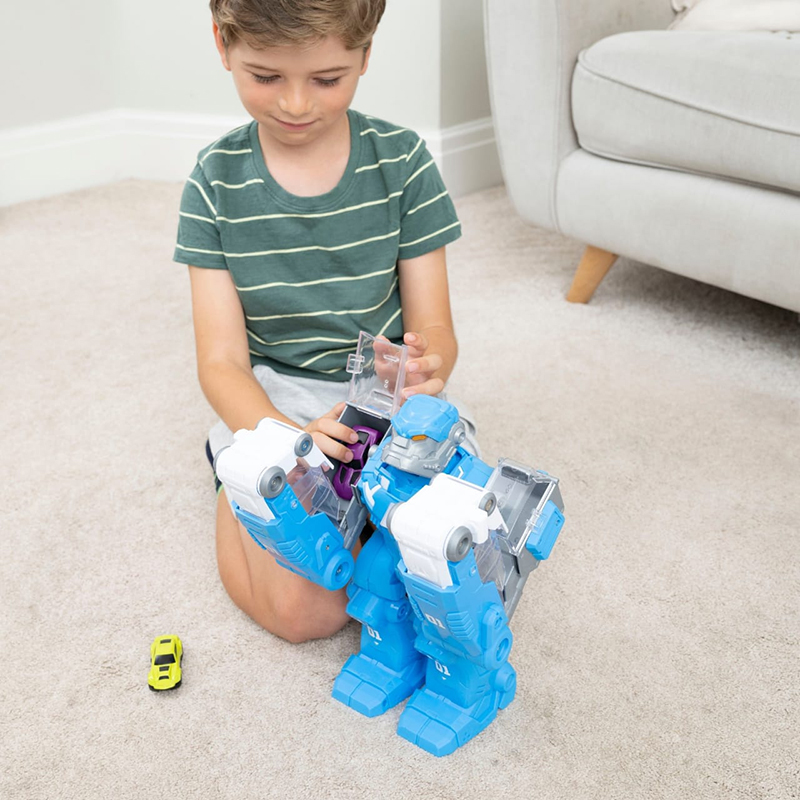 Ky robot lëshues automjetesh emocionues paraqet një dizajn të egër gorille robotik që fëmijët do ta adhurojnë. I kompletuar me drita, gërhitje gorille, tinguj motori dhe sy të shndritshëm, ai i jep jetë çdo gare duke garantuar orë të tëra argëtimi plot aksion për fëmijët e moshës 3 vjeç e lart.
