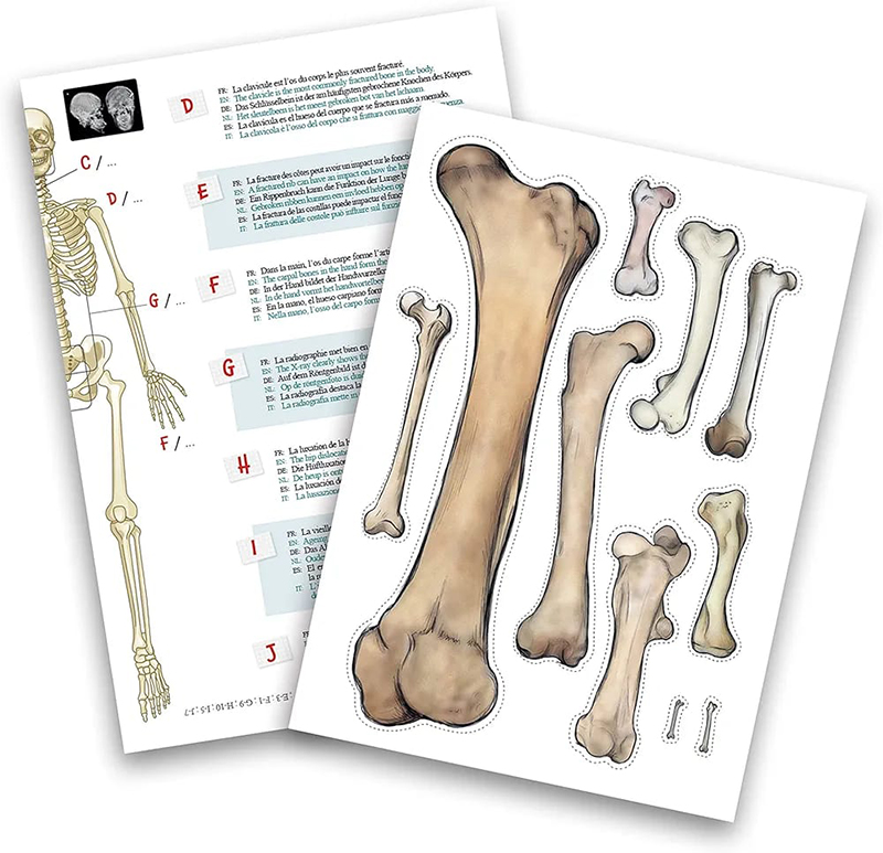 Përfshirë: 1 Skelet 85cm, 10 rreze X, 10 aktivitete, 1 bazë, afishe dhe 1 broshurë udhëzimesh.
