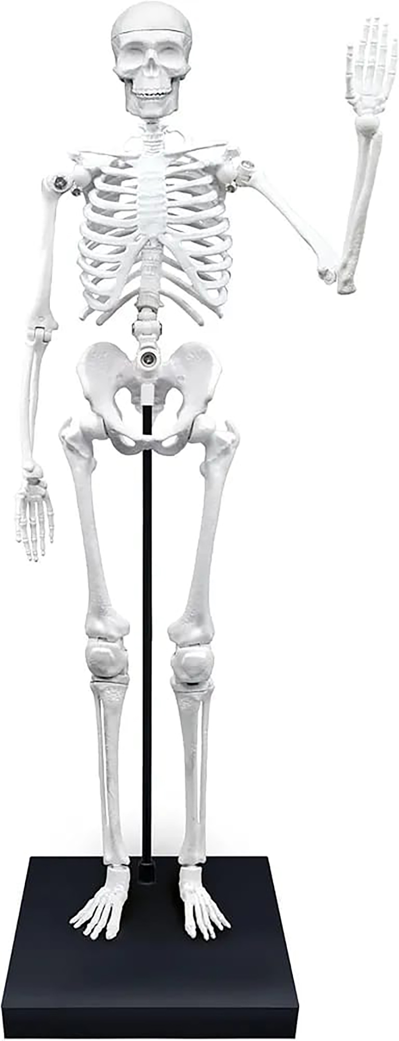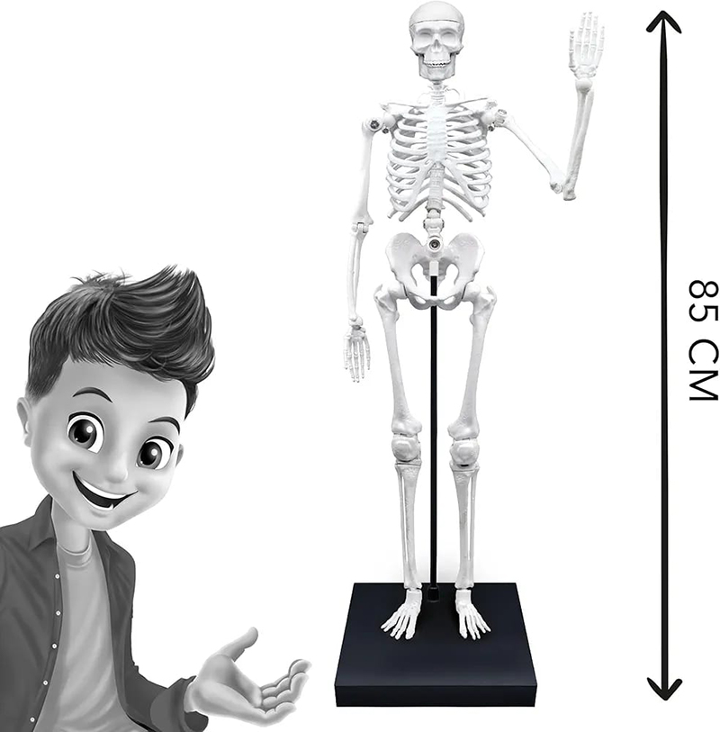 Zbuloni ndërlikimet e skeletit njerëzor me këtë model 85cm me stil autentik. Skeleti përmban shpatulla, bërryla, duar, këmbë dhe gjunjë të artikuluar, duke i lejuar atij të mbajë pozicione të ndryshme.