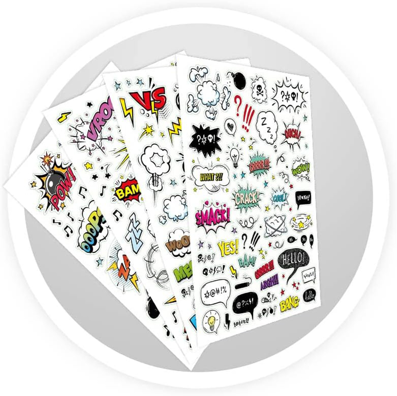 Shabllone dhe stikera speciale ju lejojnë të dizajnoni paraqitje faqesh dhe flluska dialogu. Fëmijët mund të krijojnë historinë e tyre të plotë vizuale!