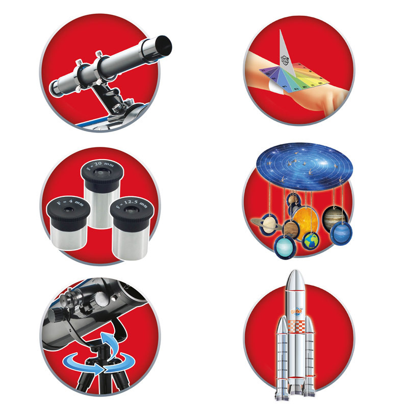 Një teleskop me 50 aktivitete Buki për t’ju mbajtur të argëtuar. Teleskopi Buki është një mjet i shkëlqyer mësimor për të voglin tuaj! Ai i lejon ata të vëzhgojnë hënën, krateret e saj, yjet, planetët dhe madje edhe yjësitë.